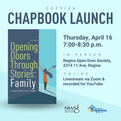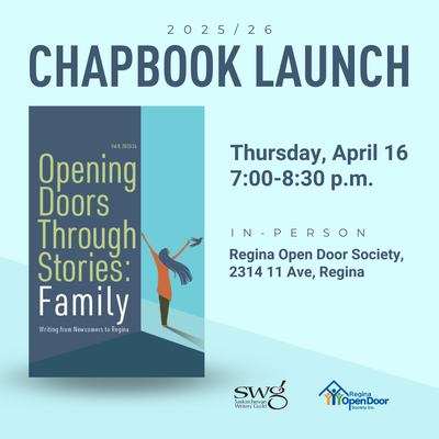 The Saskatchewan Writers’ Guild and the Regina Open Door Society are pleased to launch our chapbook, Opening Doors Through Stories: Family.
