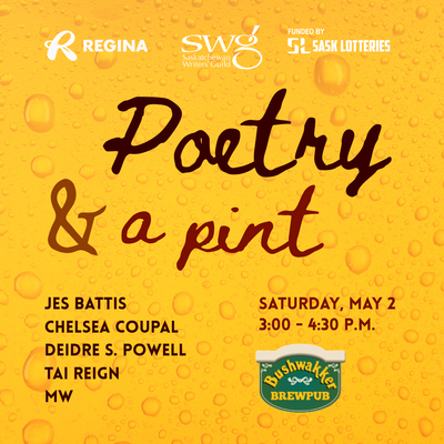 The Saskatchewan Writers’ Guild and Bushwakker Brewpub are pleased to present Poetry & A Pint, a celebration of poetry with Saskatchewan Youth Poet Laureate Tai Reign and Regina poets Jes Battis, Chelsea Coupal, Deidre S. Powell and MW.