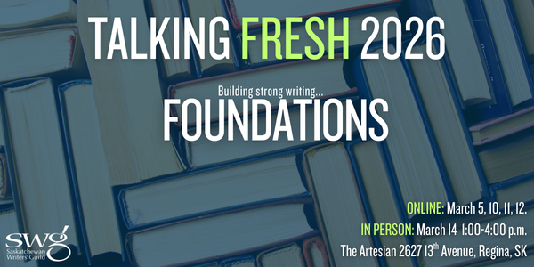 The Saskatchewan Writers’ Guild is excited to present Talking Fresh 2026 in-person on Saturday, March 14 and online on March 5, 10, 11 and 12.