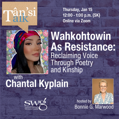 This Tânsi Talk Series, we bring to you, Chantal Kyplain! She will explore how ‘Wahkohtowin’, the Cree & Metis teachings of kinship, connection and collective responsibility, has shaped her healing and writing. Chantal is a woman in recovery and a Metis poet. She will share personal stories and excerpts from her work. Wahkohtowin teaches that we don’t walk through life alone, together we will explore how poetry can act as both ceremony and resistance-a reclamation of voice, identity and story in the face of erasure.