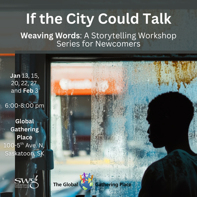 Global Gathering Place and Saskatchewan Writers’ Guild are hosting Weaving Words, a free, small-group, in-person storytelling program for newcomers who meet on the following dates from 6:00-8:00 pm: